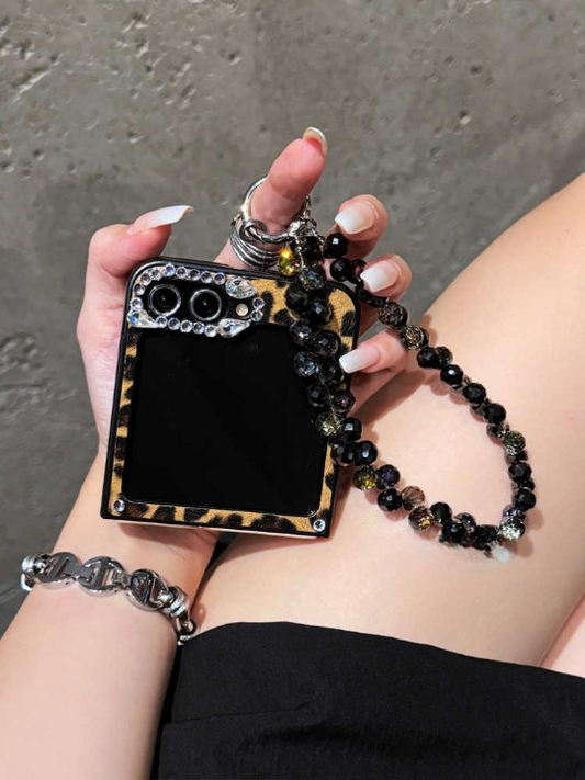 3D Diamond Leopard Print Case with Black Crystal Chain for Samsung Z Flip